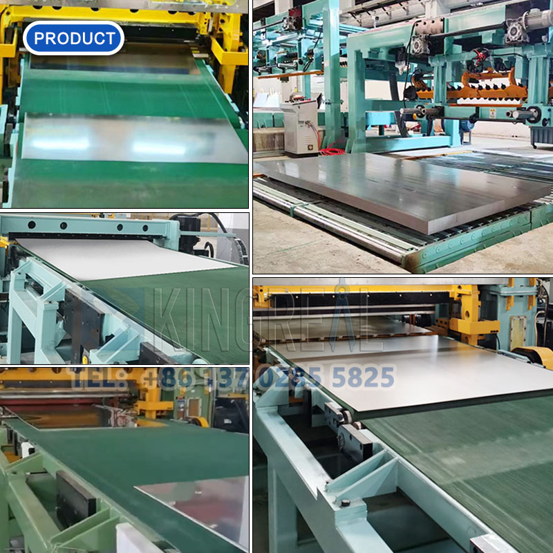 Linia de producție a bobinei de oțel KINGREAL de tăiat la lungime include de obicei componente cum ar fi derulator, nivelator, forfecare tăiată la lungime (foarfece zburătoare), transportor și stivuitor. Este utilizat pe scară largă în industrii precum produse din oțel inoxidabil, aparate electrice, vehicule și producție de mașini etc. Este deosebit de potrivit pentru prelucrarea oțelului carbon laminat la rece și la cald, oțel siliconic, tablă, oțel inoxidabil și diferite tipuri de bobine metalice după acoperirea suprafeței.